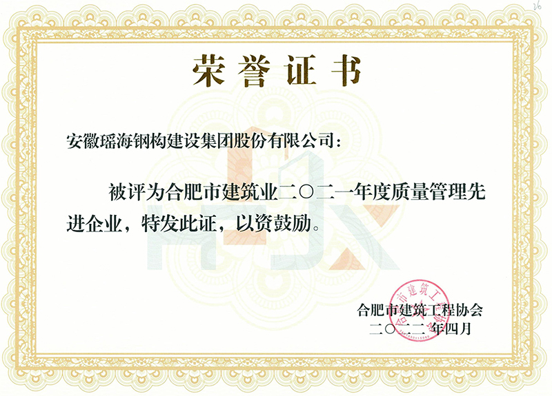 合肥市建筑業(yè)2021年度質(zhì)量管理先進(jìn)企業(yè)